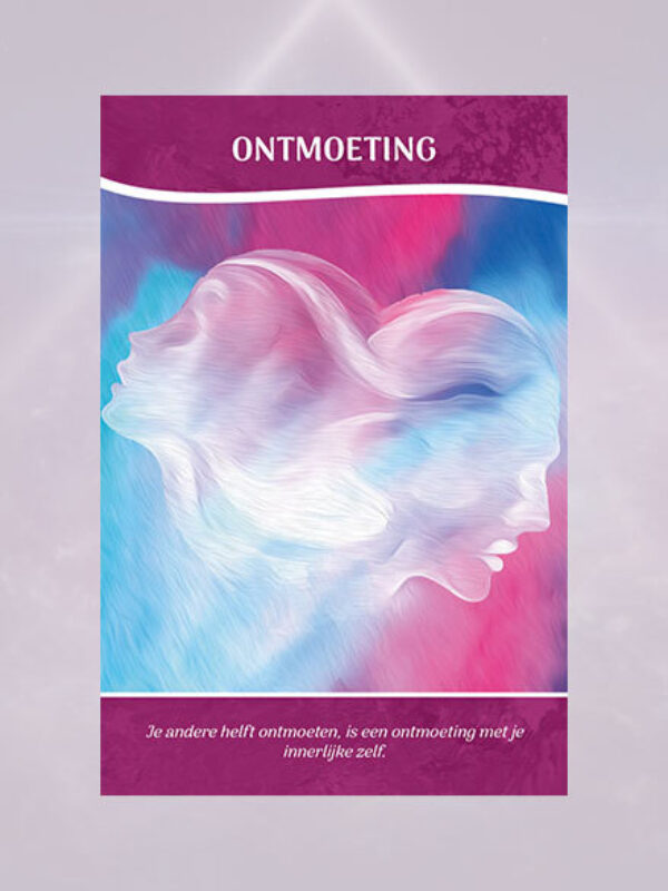 De ‘Ontmoeting’ confronteert je met de eerste stap in het tweelingzielenproces. Je bent iemand tegen het lijf gelopen, waarmee je een bijzondere band ervaart. Je voelt je veilig en ondervindt erkenning. Je hebt het gevoel de ander al jaren te kennen. De ‘Ontmoeting’ is een echte eyeopener, je leert nieuwe facetten van jezelf kennen waar je je voordien niet van bewust was. Deze kaart mag nooit op eenrichtingsverkeer wijzen. Voor beide zielen betekent deze ontmoeting een confrontatie. Probeer daarom een eenzijdige levenshouding achter jou te laten. Ontmoeten betekent elkaar tegenmoetkomen, zowel met betrekking tot het karmische als het individuele proces.