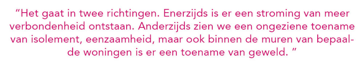 Prof. Annemans. “Het gaat in twee richtingen. Enerzijds is er een stroming van meer verbondenheid ontstaan: mensen die elkaar opbellen, voor elkaar beginnen zorgen, leden van verenigingen die voor elkaar in de bres springen, ouderen die via de stad bezoek of hulp aanvragen… Anderzijds zien we een ongeziene toename van isolement, eenzaamheid, maar ook binnen de muren van bepaalde woningen is er een toename van geweld. Twee uiteenlopende stromingen dus. Die positieve trend moeten we cultiveren en dat negatieve moeten we de volgende keer absoluut zien te vermijden. Daar moeten we nu al werk van maken. Eindelijk is de jeugdwerking terug op gang gekomen, alsook sociale diensten. Dat heet ‘uitreiken’. Outreach. Dat wil zeggen dat er niet gewacht wordt tot een hulpvraag zich aandient, maar dat er actief een helpende hand wordt gereikt aan mensen van wie we weten dat ze in precaire omstandigheden leven. Het is belangrijk om daar heel veel aandacht aan te schenken en te vermijden dat het de verkeerde kant opgaat. Maar het heeft uiteraard vooral te maken met de maatschappij zelf. Als iedereen gelukkig is, is er geen geweld, racisme, enz. Vandaar dat ik de laatste vijf jaar ben opgeschoven van gezondheidseconomie naar welzijnseconomie, met het UGent-NN geluksonderzoek, want dat is een niet te onderschatten element in vele maatschappelijke problemen. Zo blijkt dat arbeiders en studenten het zwaarst hebben geleden onder de coronacrisis, op vlak van geluksgevoel dan. Bij studenten komt dat omdat zij heel sterk afhankelijk zijn van hun sociaal netwerk, dat tijdens de lockdown volledig wegviel. Arbeiders deelden het meeste in de klappen, omdat ze vaak technisch werkloos werden. Mensen moeten zich, om gelukkig te zijn, nuttig kunnen maken. Maar we merken ook positieve veranderingen op: mensen zijn echt op zoek gegaan naar zichzelf. Zo worden velen zich bewuster van hun fysieke én mentale gezondheid en beseffen ze dat ze daar zelf proactief aan kunnen werken. Dat zijn gunstige trends waarop we kunnen verder bouwen om de samenleving te verbeteren.”
